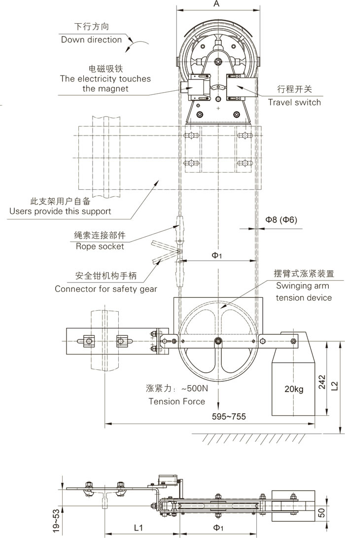 中心至地面最小距离L2(mm) The minimum distance between the center and the ground |