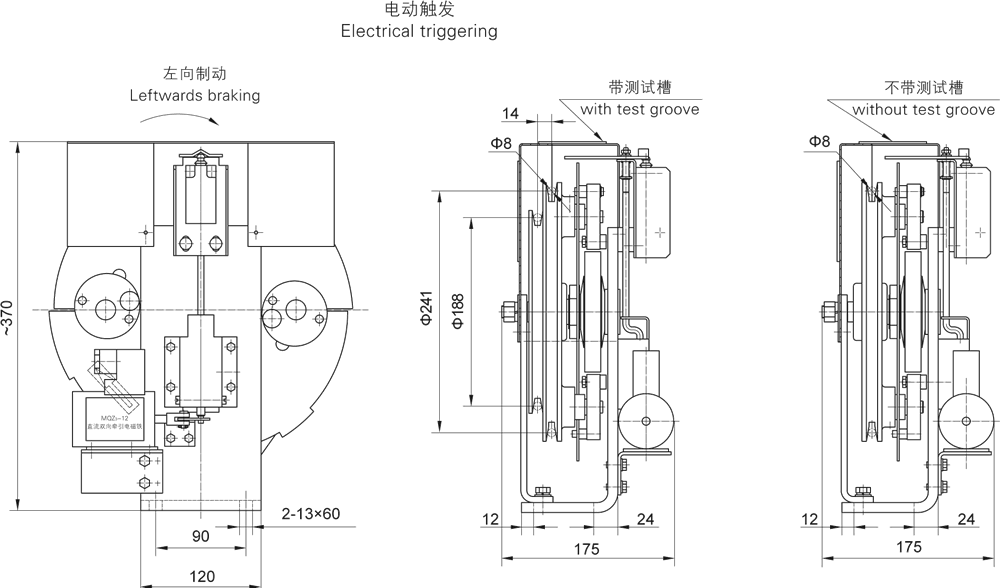 installed on the roomless elevators.Two triggering ways, i. e. braking wire triggering(manually)and reset,and electrical triggering & electrical reset.