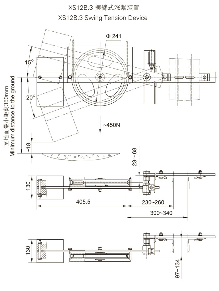 涨紧力450N时标配张紧装置土豪:XS12B.3